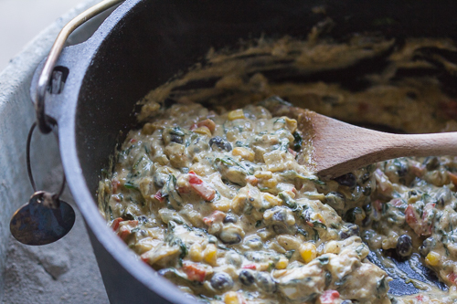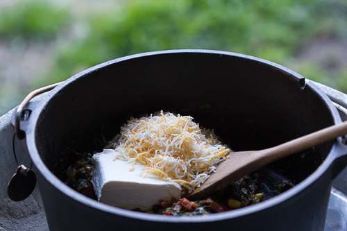 Put the oven over the charcoal briefly if the cheese isn’t melting but stir constantly to avoid burning the cheese.