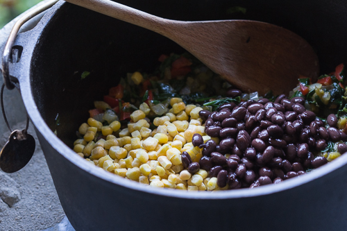 Add corn, black beans, salt, pepper, and chipotle and stir until spices are distributed evenly.