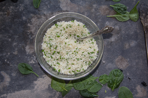This is a complete meal all by itself, thanks to the quinoa, a superfood that is packed with potassium, iron, vitamin B-6 and magnesium, and the spinach and the two-cheese sauce. It is a wonderful side dish for Rosemary Chicken and would be an excellent companion to pork.