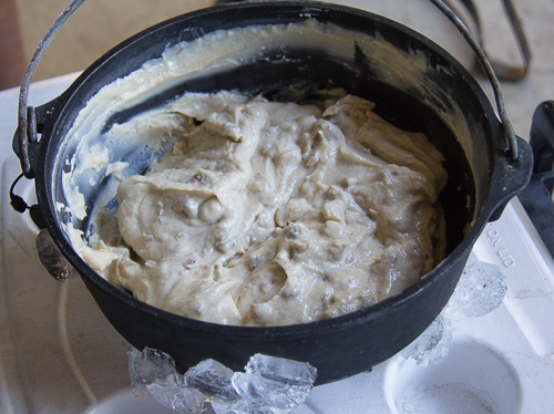 After many unsuccessful attempts at making ice cream in our camp Dutch oven and then learning from our mistakes, we finally achieved ice-cold, solid and creamy success!