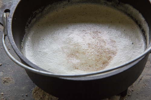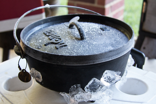The Dutch oven was so cold that the ice stuck to the outside and ice crystals formed on the lid and bale. Brrr!