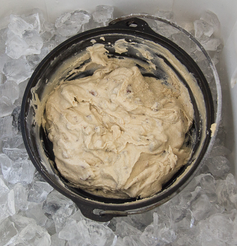I now have answers to the questions “How long does it take to make ice cream in a camp Dutch oven?” and “What are the most important steps to the process?” In this post I will share the tools and equipment we used to set up an ice-cold environment to make brown butter pecan ice cream and share the key steps needed to make the ice cream freeze properly.