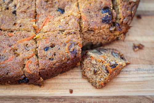 - Pour orange and carrot mixture into the dry ingredients. Fold together. Divide batter between two ovens/pans.