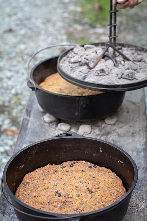 - Prepare two 12-inch camp Dutch ovens (OR two 9x12 baking dishes) by spraying with oil.